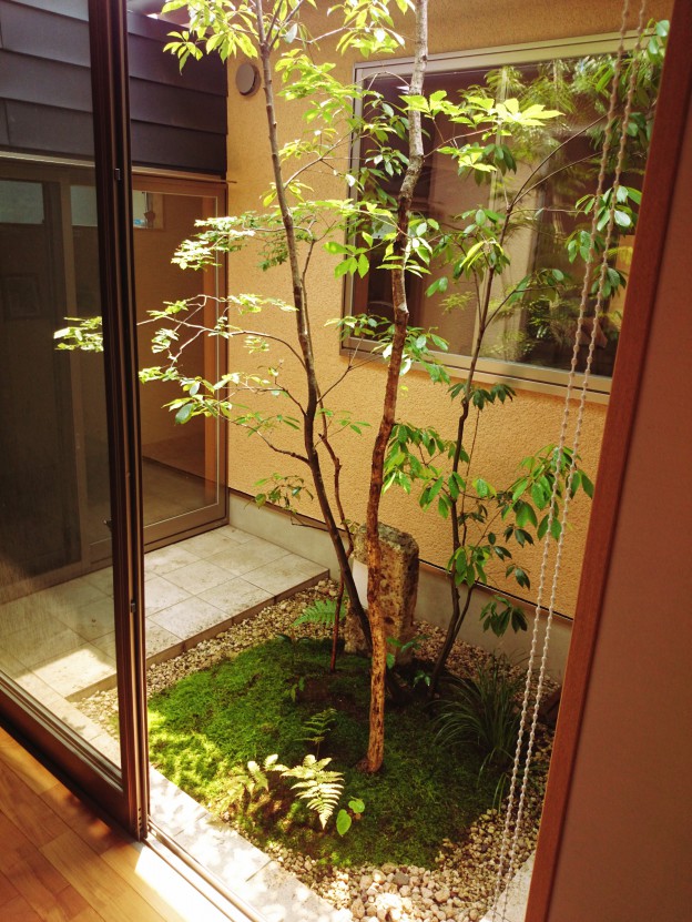 2坪弱の中庭に苔と雑木を使い山の中の景色を切り取った庭。